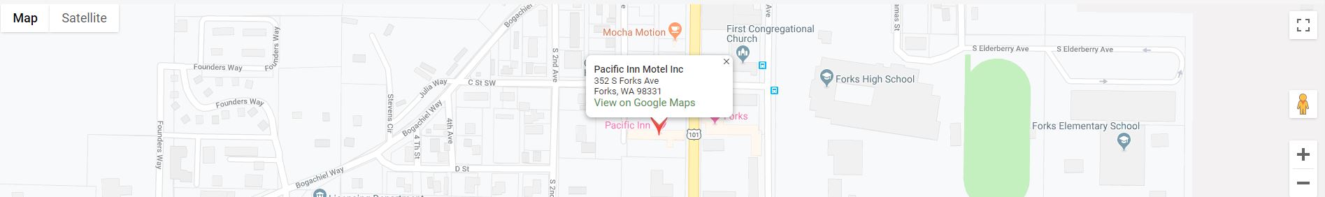 Welcome to the Pacific Inn! Our accommodations bring you all the comforts of home but wrapped up in the beauty that is the Olympic Peninsula of Washington state. We are located in the heart of Forks just off of highway 101 (Forks Ave) and main street. A top highlight for our visitors is the vast hiking, fishing, hunting, and beachcombing options nearby. Explore the lush Hoh Rain Forest on the west side of the Olympic Peninsula or a serene ocean view at La Push or Rialto Beach. This 2,000 square mile area is bordered on the north and west by over 100 miles of saltwater shores, and to the south and east by alpine meadows and rain forest valleys. Venture out to hot springs and waterfalls as well, to top off your visit.